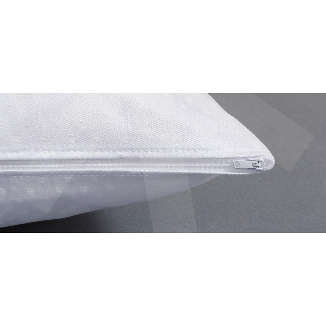 Almohada desenfundable mediante el uso de cremallera, con tejido exterior en 100% algodón y tejido interior en 50% algodón / 50% poliéster.