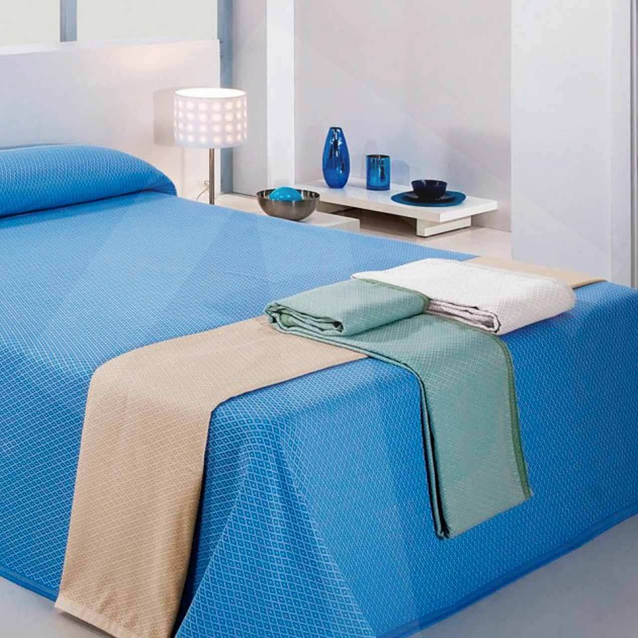 Colcha hostelería modelo Girona en polialgodón, disponible en colores blanco, azul celeste, beige y verde.